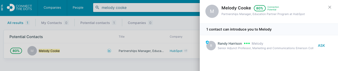 The best connectors are people you have a strong relationship with who have a strong or familiar relationship with your target. You will be able to see this in Connect the Dots.